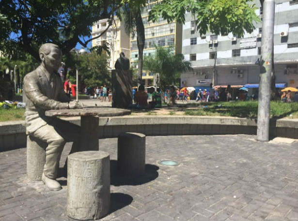 À dir.: estátua do mesmo localizada na Praca da Independência/ Praça do Diário, em recife (Foto: Ingrid Cordeiro/NE10, retirada do site poraqui.com)